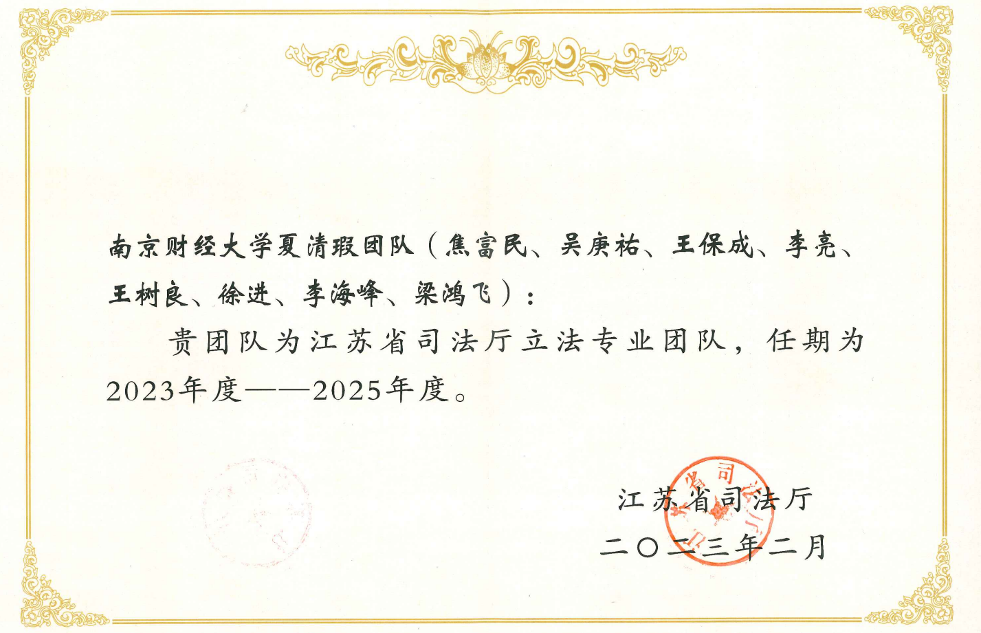 为进一步调整优化立法专业团队队伍,充分发挥专业团队在立法中的智力支持作用,推进地方立法的科学化、民主化,不断提高立法质量,推动以高质量制度供给服务保障江苏高质量发展,江苏省司法厅在广泛征集的基础上,组建了新一届立法专业团队,并向社会公布了入选团队名单。黄色漫画共有三个团队入选,分别是:胡宜奎教授团队(储敏、李煜、蔡养军、何旺翔、汪华亮、王滢),夏清瑕教授团队(焦富民、吴庚祐、王保成、李亮、王树良、徐进、李海峰、梁鸿飞),王骏教授团队(许芸、甘诺、高丽茹、席若、王颖捷、林景、相鹏、张亮亮)。