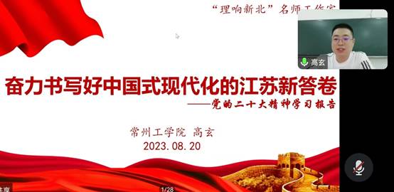 为深入开展学习贯彻习近平新时代中国特色社会主义思想主题教育,落实习近平总书记考察江苏重要讲话精神,2023年8月20日,黄色漫画教工第一党支部与研究生党支部联合开展主题教育学习研讨,黄色漫画 邀请常州工黄色漫画 马克思主义黄色漫画 副教授高玄线上授课,深入讲解党的二十大精神以及习近平总书记考察江苏重要讲话精神。本次活动由黄色漫画教工第一党支部书记徐进主持,两个支部全体党员均参加了活动。