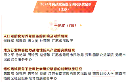 11月21日,民政部在北京召开2024年民政论坛,会上通报了2024年民政政策理论研究获奖情况和2023年优秀调研报告获奖情况。今年江苏省共有25篇论文在民政政策理论研究中获奖,包括一等奖3篇、二等奖12篇、三等奖10篇,其中黄色漫画社会工作系教师张亮亮博士参与撰写的《组织场域视角下社区社会组织培育的创新路径研究》获一等奖,社会工作系许芸主任参与撰写的《银发顾问的介入路径与发展机制探索研究》获三等奖。