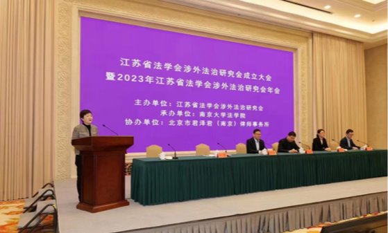 2023年12月2日,江苏省法学会涉外法治研究会成立大会暨2023年年会在南京召开。大会选举产生研究会第一届理事会组成人员及领导班子成员,并围绕“推动共建‘一带一路’高质量发展的涉外法治保障”的主题开展研讨交流。会议主要包括主旨演讲、涉外法治与国际法的互动、涉外法治人才建设与中外法治变革、数字时代的涉外法治理论与实践等四个环节。各位与会专家学者在会上进行了热烈的交流与讨论。