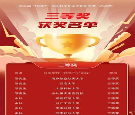 我校本科生代表队荣获第二届“陆由杯”全国数字化法学创新大赛三等奖