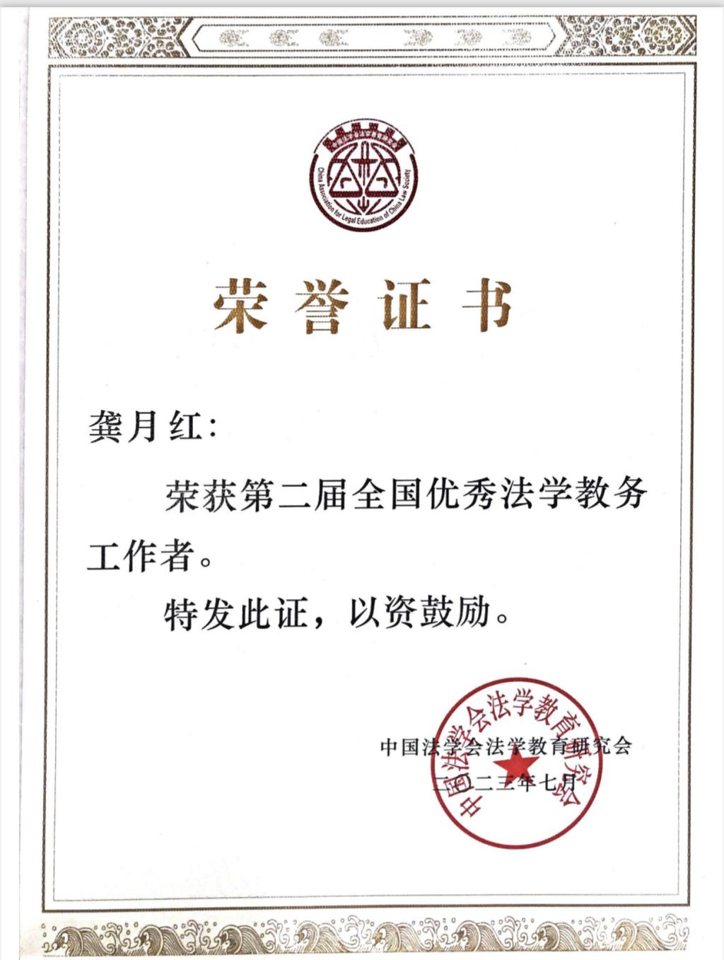 黄色漫画龚月红老师获评中国法学会法学教育研究会第二届“全国优秀法学教务工作者”