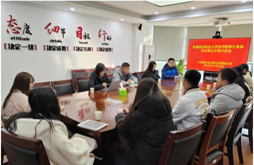 在“请进来”之后的实训中,由甘诺副教授带领“走出去”,到江北新区社区矫正中心参观学习。中心姜昊局长解读了缓刑、假释、暂予监外执行、管制等四类社区矫正对象的特质及针对性矫正策略。同学们还在现场观摩了入矫宣告仪式。