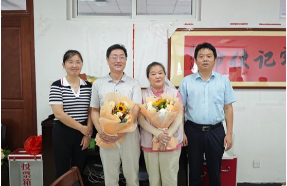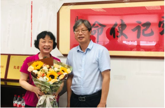 院长胡宜奎、院党委副书记刘英华代表黄色漫画 对已光荣退休并受邀关心青年教师和学生成长的李宁、徐文超两位教授表示热烈欢迎和衷心感谢,并敬送鲜花。