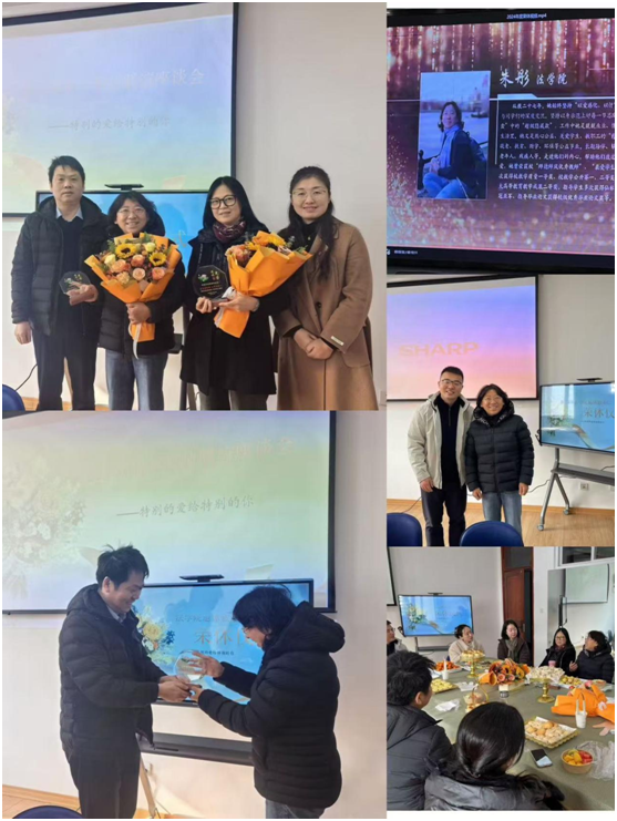 院分工会主席龚月红代表工会为两位荣休教师献上鲜花以及纪念品。