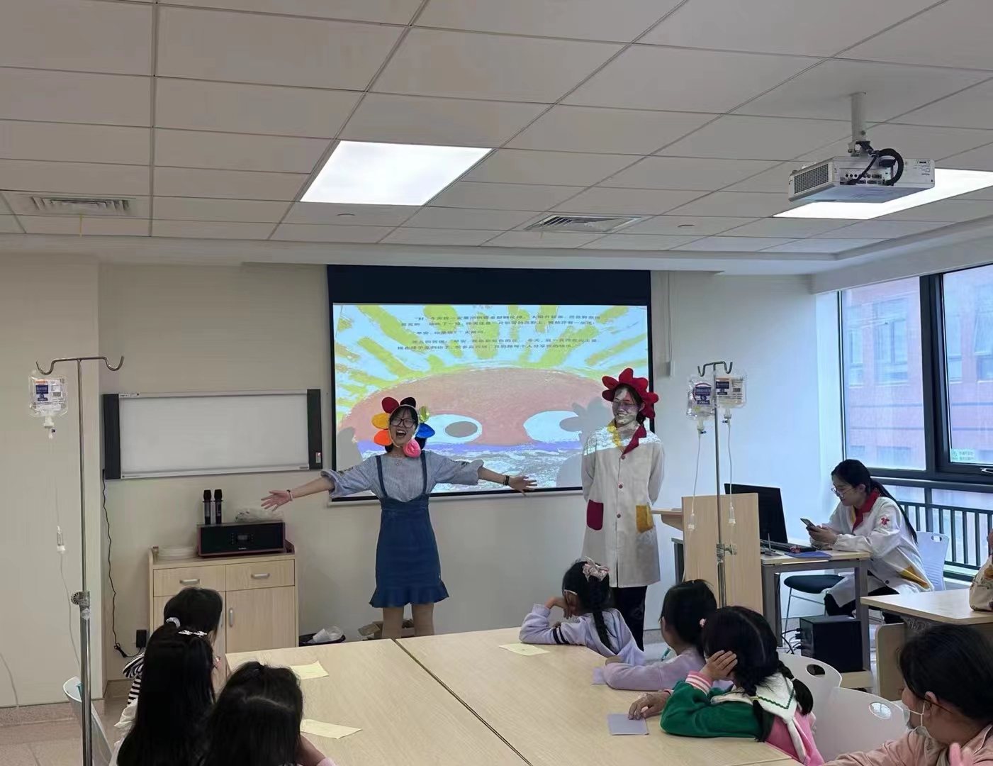 二、走进医院,通过话剧形式为患病儿童表演绘本