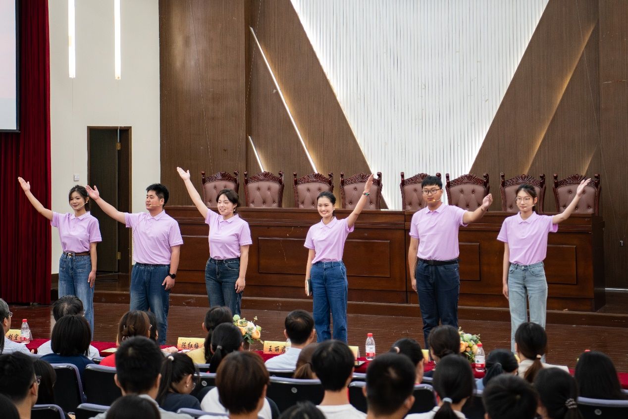 在校生代表张钰结合自身经历,分享了从迷茫到清晰的学习心路,为新生提供了实用的成长建议。紧接着,新老生代表共同朗诵《我和我的大学》,用真挚的声音传递南财法学人的精神接力与温暖传承。