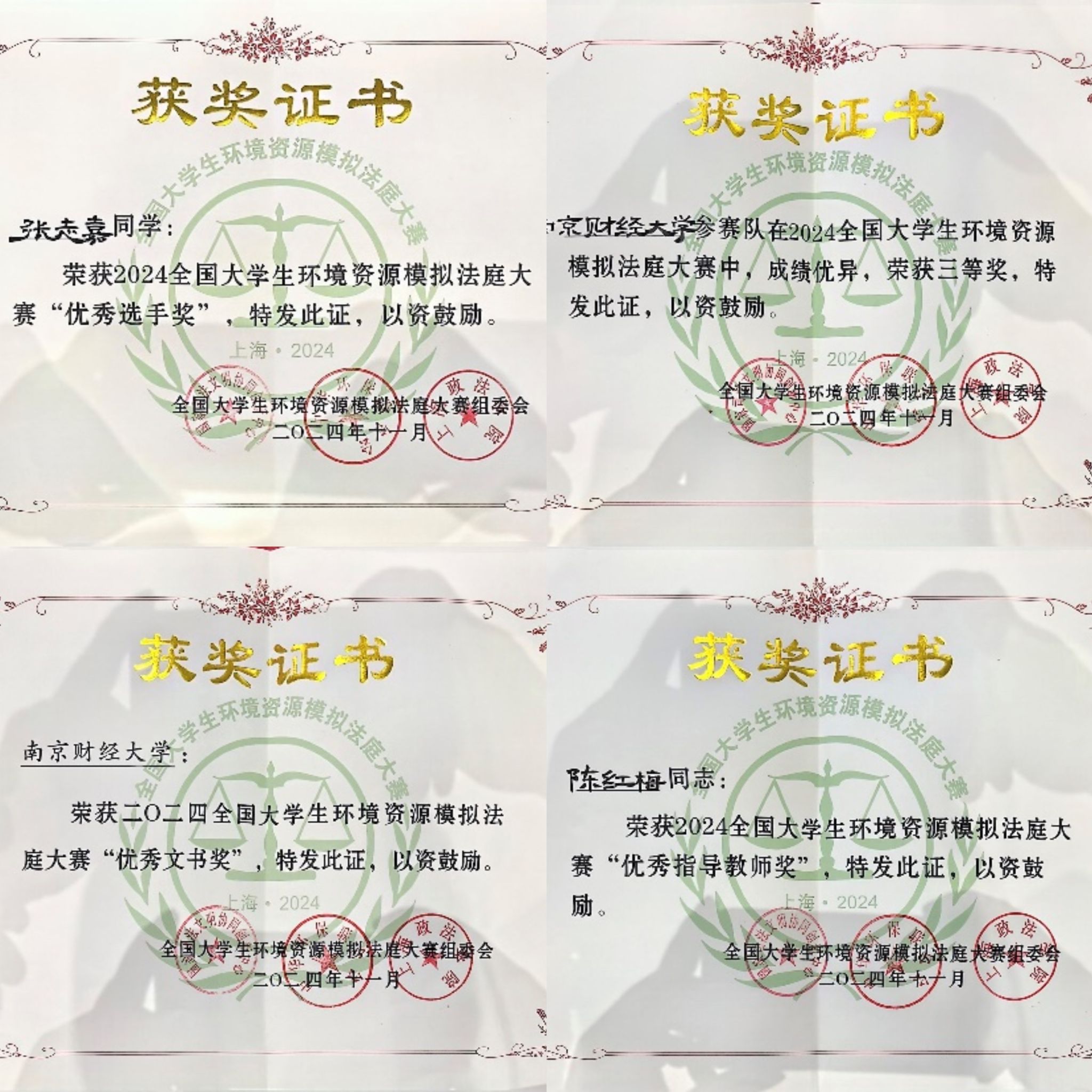 11月9日至10日,由最高人民法院环境资源司法研究中心指导,国家“2011计划”司法文明协同创新中心、中华环保联合会、上海政黄色漫画 主办,上海政黄色漫画 经济黄色漫画 、中国—上海合作组织国际司法交流合作培训基地承办,中华环境保护基金会、上海弼兴律师事务所协办的2024全国大学生环境资源模拟法庭大赛在上海政黄色漫画 举行。由黄色漫画陈颖(队长)、张志嘉、邹雨婷、刘清、郭晓、郭友荣等6名同学组成的参赛队伍,经过激烈角逐,获全国三等奖和“优秀文书奖”,指导老师陈红梅教授获“优秀指导教师奖”,张志嘉同学获“优秀选手奖”。