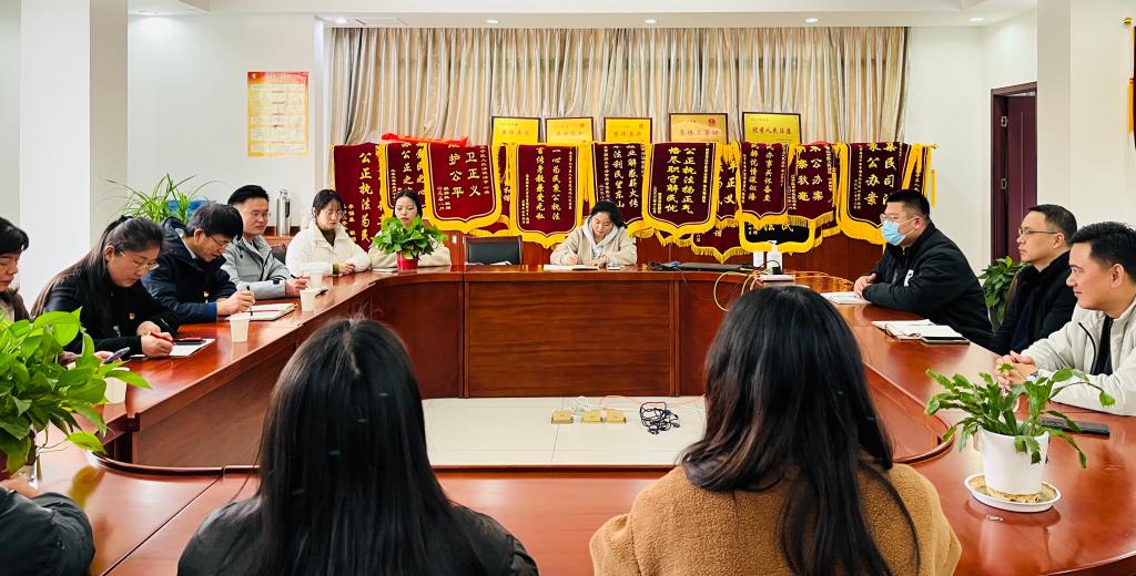 郭辉副庭长对此次实习作了具体安排,结合专业特点为黄色漫画实习生安排了对应的业务部门,并就安全事项、考勤管理、工作内容等方面提出相应要求。