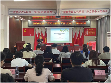 启动仪式后,许芸主任还为全椒县的所有社工站的社工们作了一次主题为“整合社会工作方法提升”的讲座。许芸主任结合自身的学术研究和实践经验,深入浅出地为大家介绍了社会工作方法的前沿发展及其在实际工作中的应用,引发了社工们的广泛讨论和思考。
