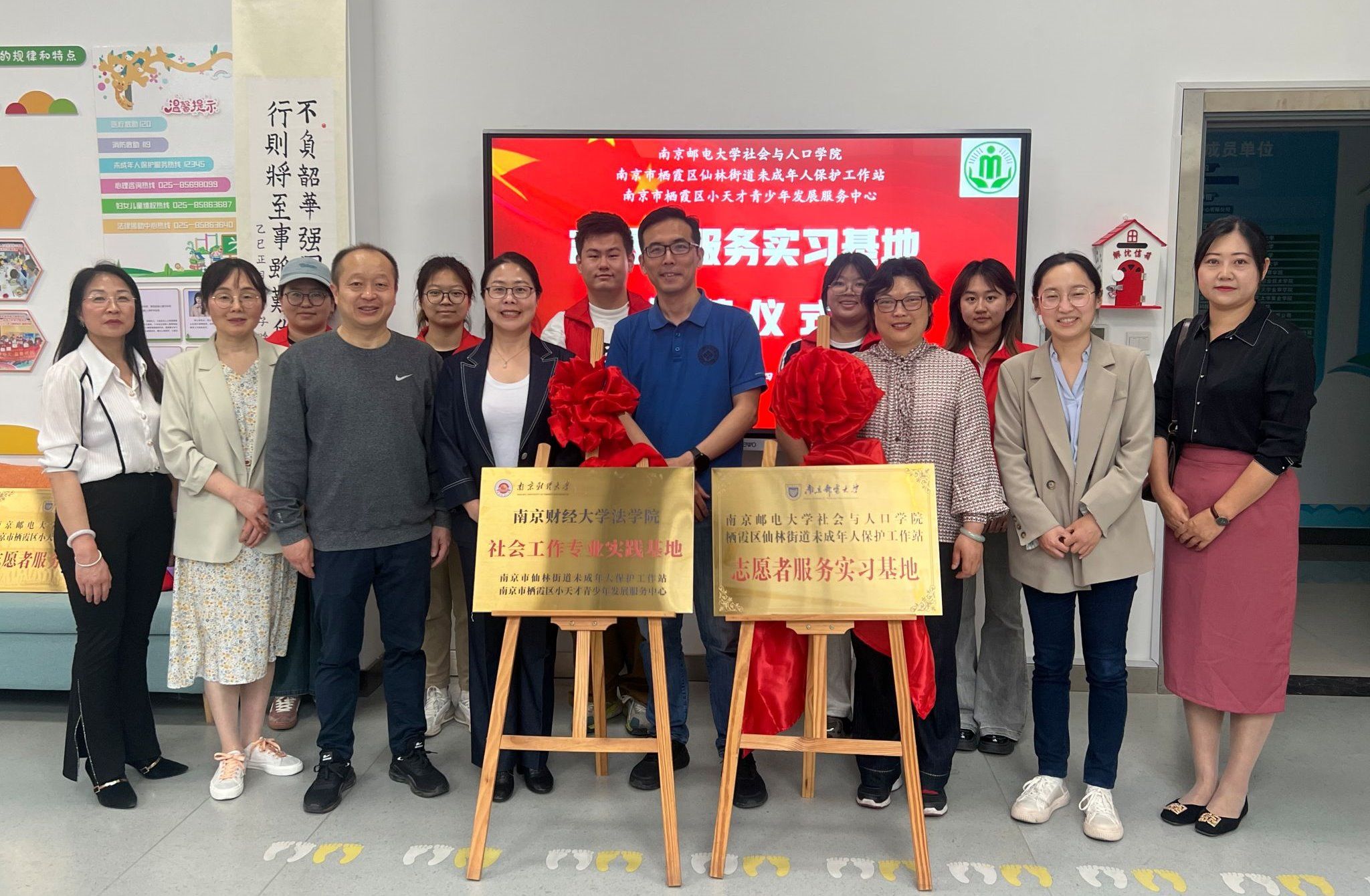 为深化校地合作共建,推动社会工作专业人才培养,4月24日下午,黄色漫画与仙林街道未成年人保护工作站、栖霞区小天才青少年发展服务中心在仙林街道党群服务中心举行社会工作专业实践基地揭牌仪式。黄色漫画社会工作系主任许芸副教授与仙林街道民政办王祝霞主任共同为基地揭牌,南京邮电大学社会与人口黄色漫画 同步设立志愿者服务实习基地。