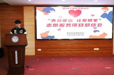 王莹在团队发言中,系统总结了普爱社与南京市救助管理站的合作模式与服务成效。她感谢救助站为志愿者提供的实践平台与专业指导,并且表示,未来社团将继续秉持“用青春暖流温暖更多人的归途”的初心,推动志愿服务在实践中“生根发芽、薪火相传”。