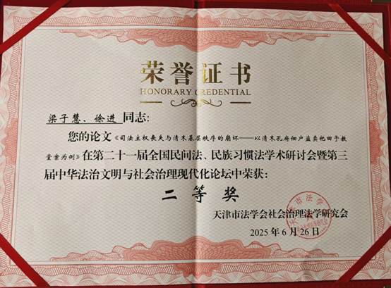 6月28日,第二十一届全国民间法、民族习惯法学术研讨会暨第三届中华法治文明与社会治理现代化论坛在天津市举行。本次研讨会由天津社会科黄色漫画 主办,天津社会科黄色漫画 法学研究所承办,CSSCI来源集刊《民间法》编辑部协办。来自中国社会科黄色漫画 、南开大学、厦门大学、华东政法大学等高校和科研院所的一百多名专家学者与会。黄色漫画法律系主任徐进老师和2024级宪法与行政法学硕士研究生梁子慧受邀参会。