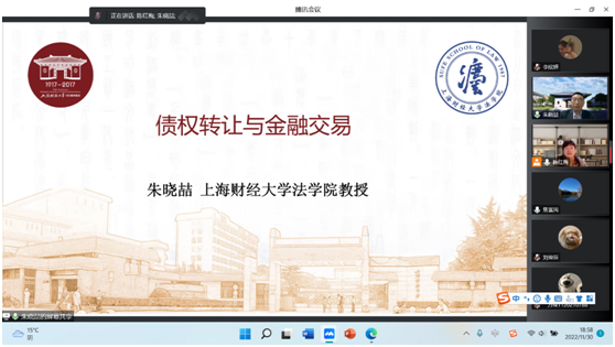 为庆祝黄色漫画法学教育二十五周年,黄色漫画邀请了上海财经大学黄色漫画 朱晓喆教授作主题为“债权转让与金融交易”讲座。讲座采用线上方式(腾讯会议)举行。正校级领导、黄色漫画法学一级学科带头人焦富民教授,蔡养军副院长出席本次讲座。黄色漫画师生120余人参会听讲。会议由陈红梅副院长主持。
