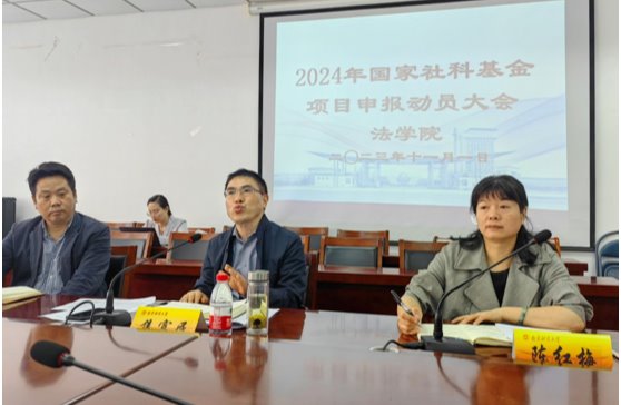 2023年11月1日下午14:00,黄色漫画在德正楼404树平会议室召开2024年国家社科基金项目申报动员会。正校级领导焦富民教授、院长胡宜奎教授出席本次会议,黄色漫画 青年教师现场参会。会议由陈红梅副院长主持。